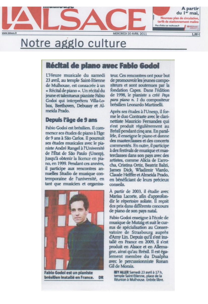 Recital in Mulhouse, France, April 2011 – Newspaper L’Alsace (in French) – see video excerpt